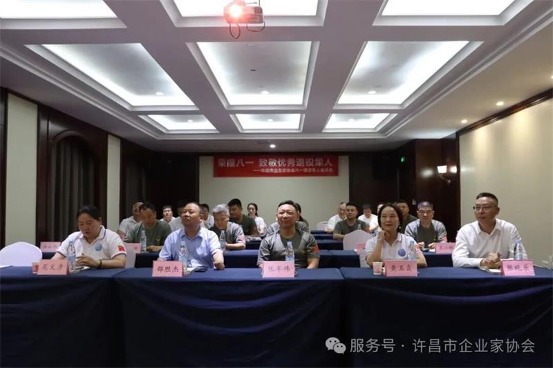 在“八一”建軍節(jié)來(lái)臨之際,為弘揚(yáng)軍人精神,表彰優(yōu)秀的退役軍人,7月27日上午,許昌市企業(yè)家協(xié)會(huì)在花都溫泉隆重舉行“八一”表彰座談會(huì)。市退役軍人事務(wù)局領(lǐng)導(dǎo)、協(xié)會(huì)領(lǐng)導(dǎo)、退役軍人企業(yè)家代表、軍屬及相關(guān)部門(mén)負(fù)責(zé)人齊聚一堂,共慶建軍佳節(jié),暢談使命擔(dān)當(dāng)。
